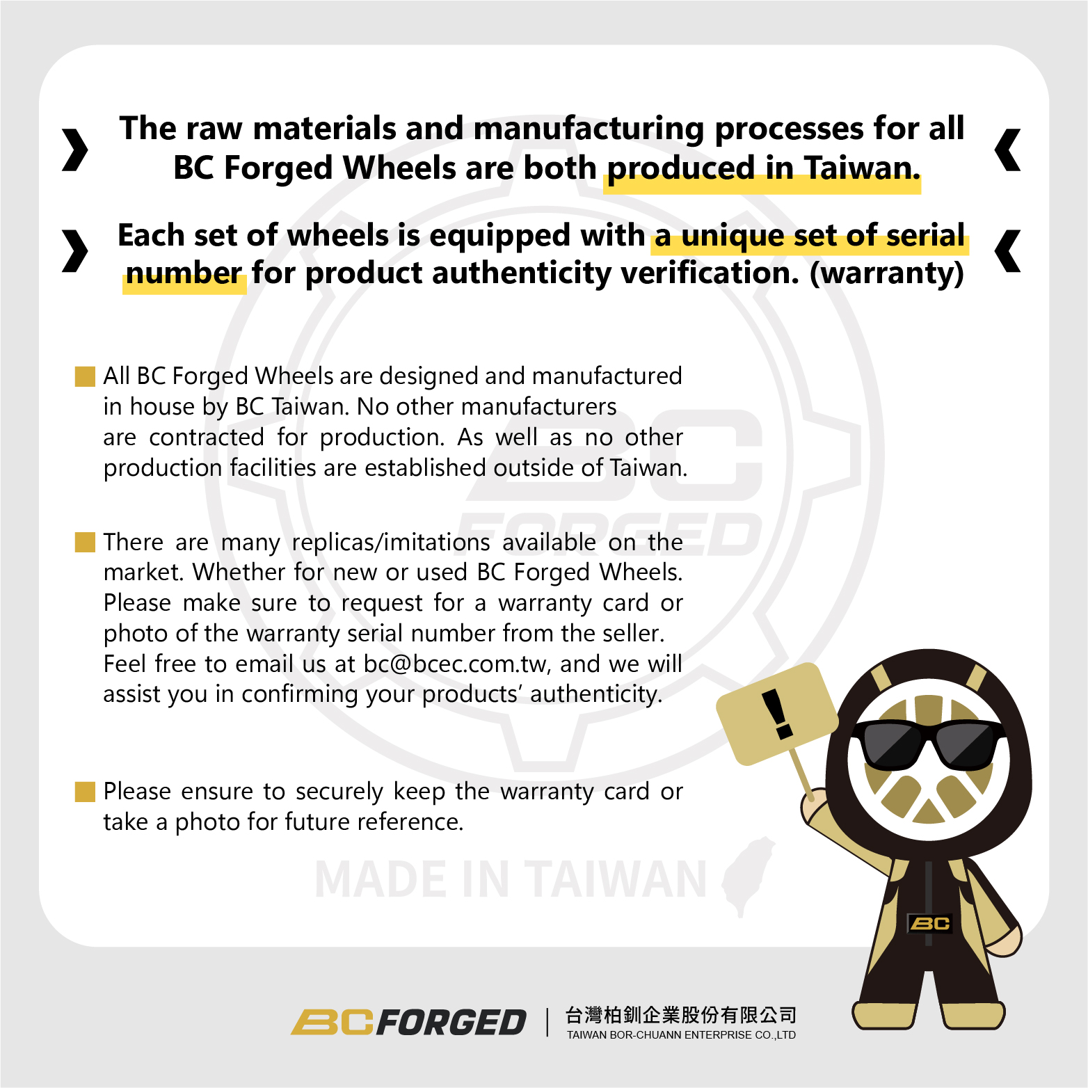 All of our products are designed by our own. With years of iterative improvement for the quality of products, our products have become the benchmark for "Made in Taiwan" product, truly beloved and trusted by many of the tuning players.