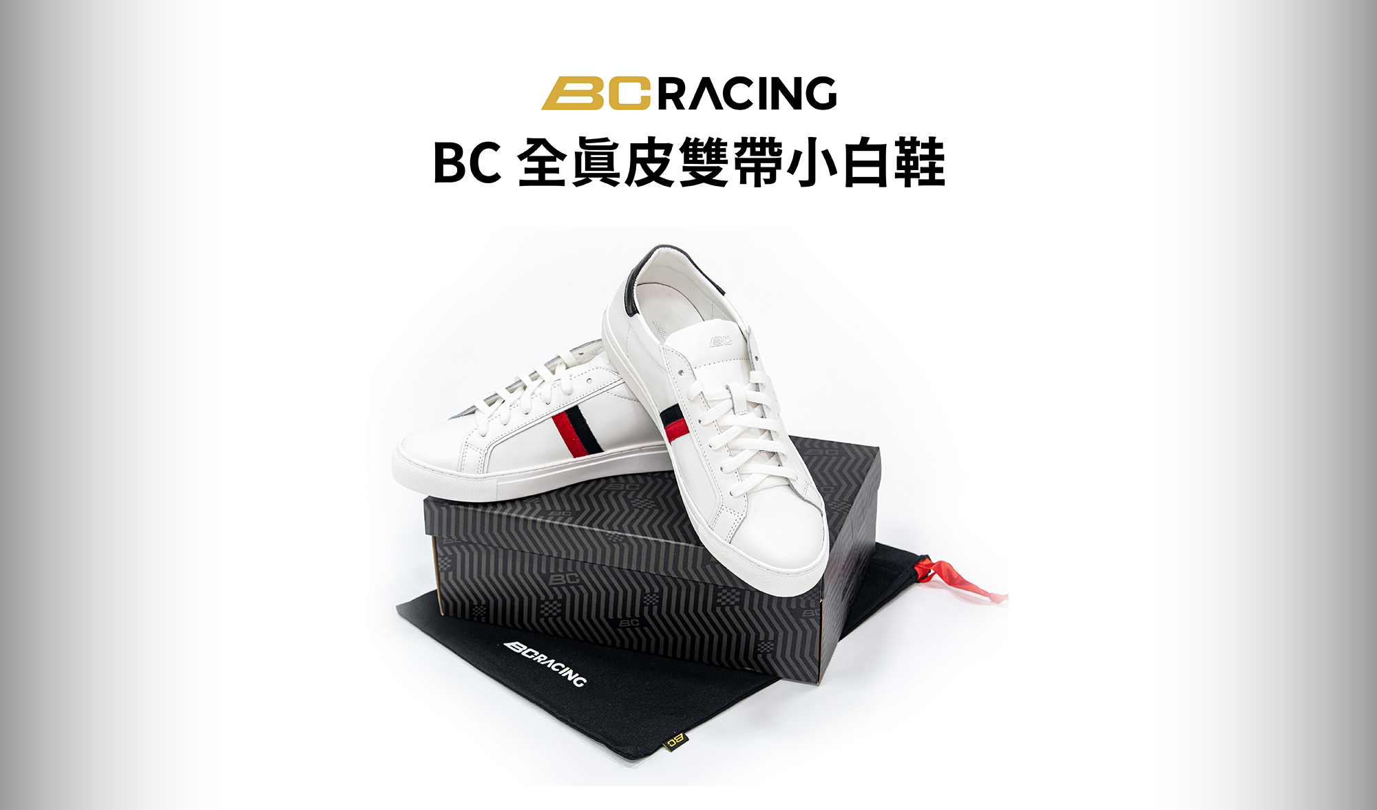 BC RACING BiStripe Classic 全真皮雙帶小白鞋